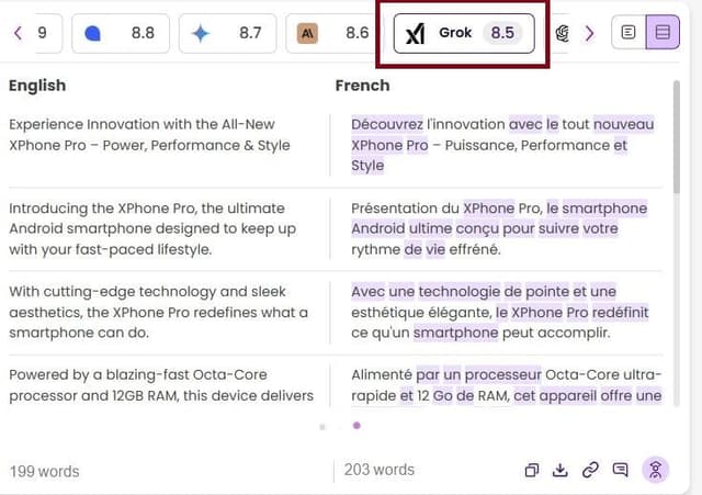 Grok (now at version 4.1) is one of 22 models in MachineTranslation.com's SMART consensus system. See what Grok's real-time data access and reasoning depth add, and how SMART uses it alongside 21 other models to verify every output.