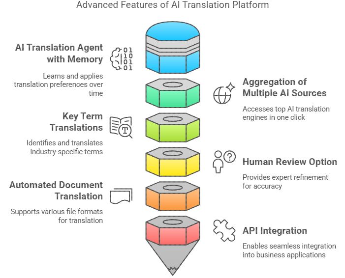 Our AI translation platform offers a variety of innovative features that set it apart from traditional tools: