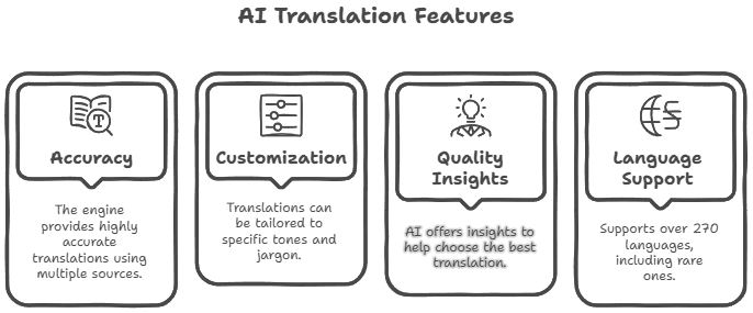 Aggregation of Multiple AI Sources – Access translations from top AI translation engines in one click.