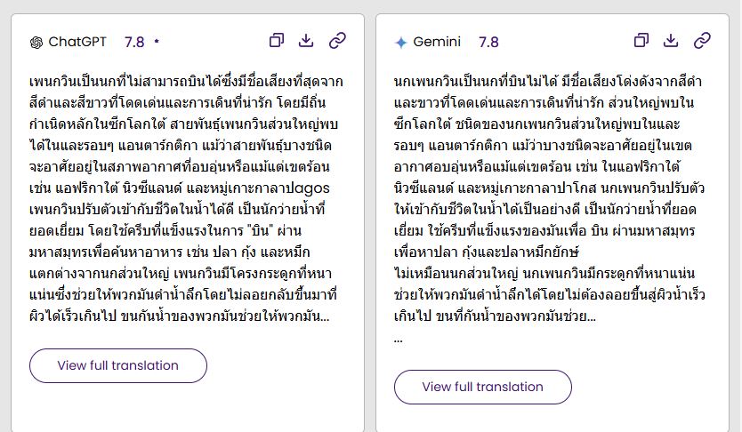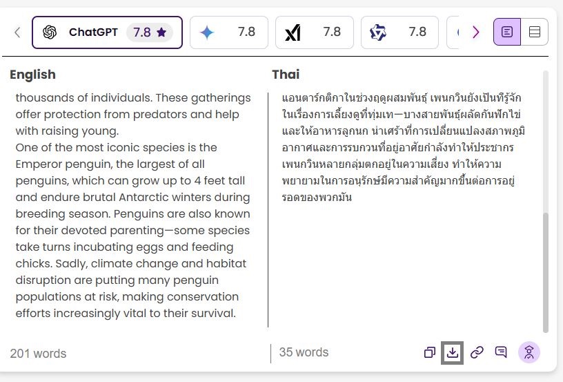 You don’t just get one translation. You get results from multiple top AI engines and Large Language Models (LLMs)—side by side. Compare, choose, refine.
