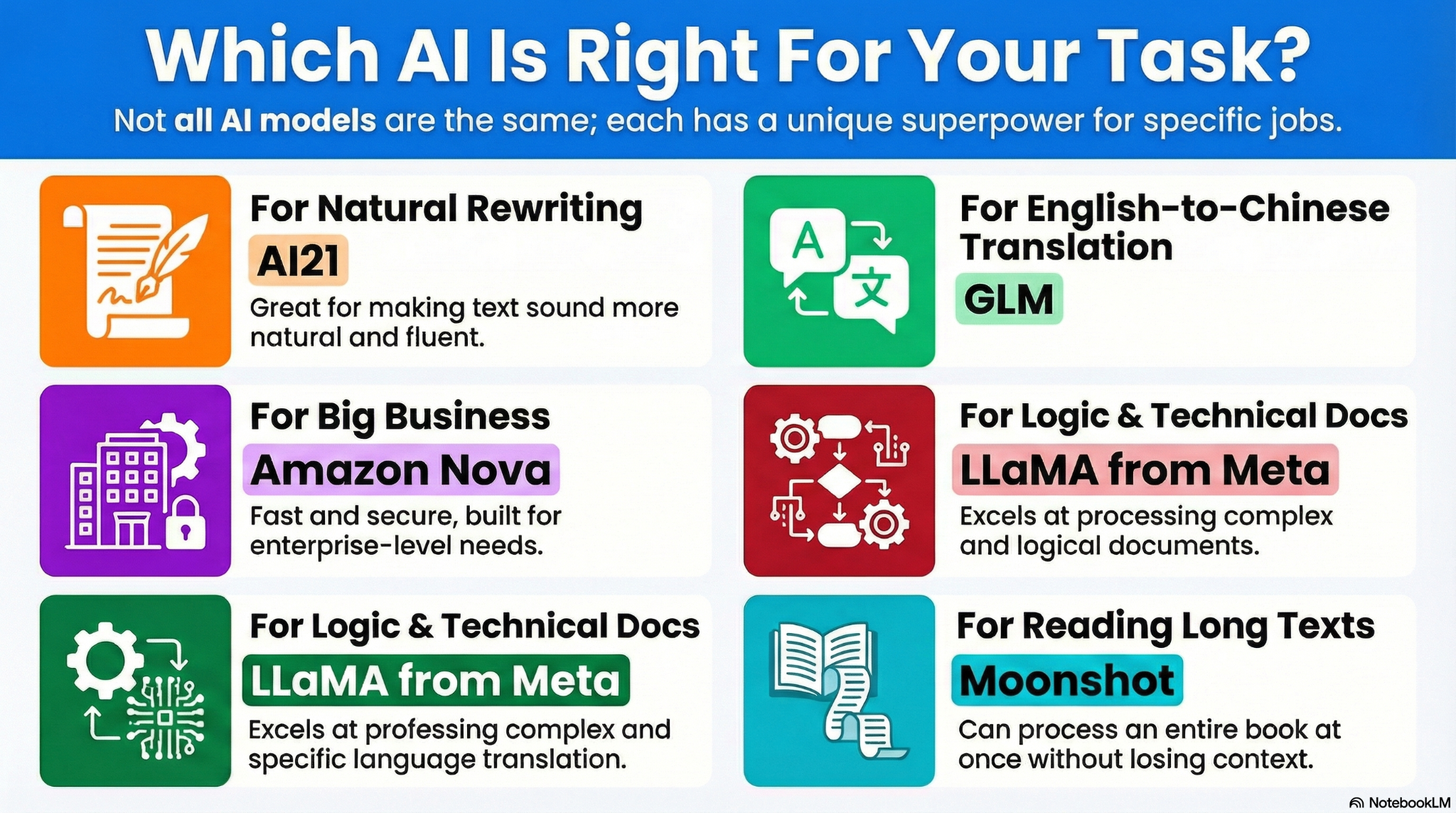 MachineTranslation.com has just finished one of its biggest updates of the year. Five of the world’s most advanced AIs have just been added to the platform: AI21, Amazon Nova, GLM, LLaMA, and Moonshot.