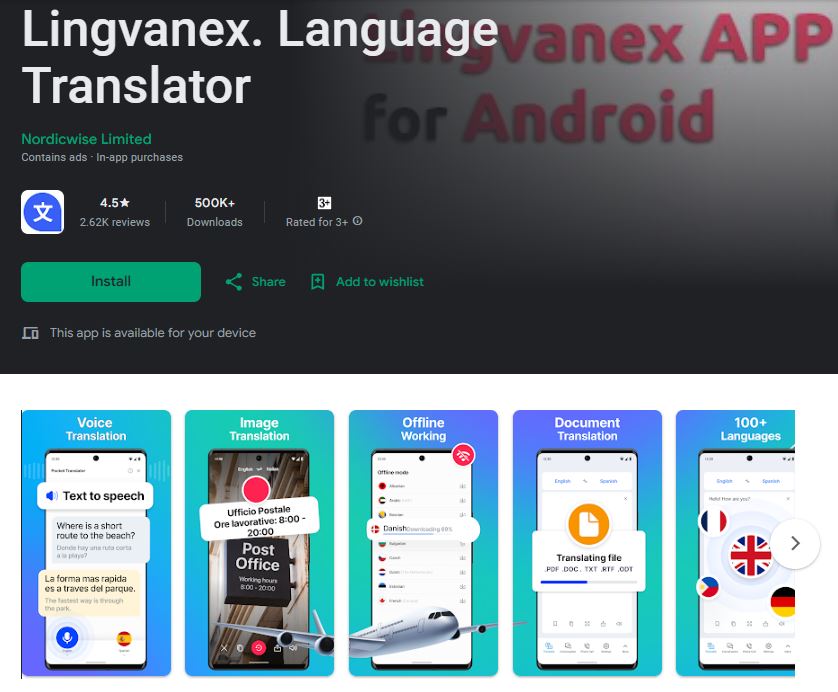 One of Lingvanexâs strengths is its reliable voice-to-text accuracy, which helps in conversations or dictation scenarios. It also offers robust offline capabilities, allowing you to download languages and use them without internet access. For frequent travelers or users with active lifestyles, Lingvanex is a solid option that combines convenience with wide language coverage.