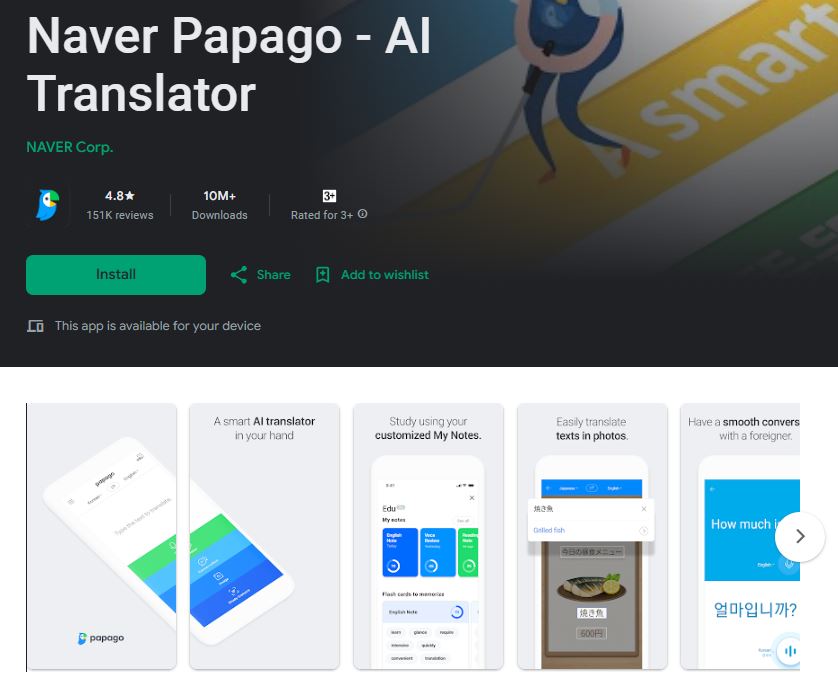 A standout feature is Papago Mini, which enables real-time translation of copied text through an always-on overlay, allowing seamless use across apps without switching screens. This makes it especially useful for messaging, browsing, and multitasking. While its language support is more limited compared to some global competitors, it excels in Asian language pairs and offers offline access through downloadable language packs.