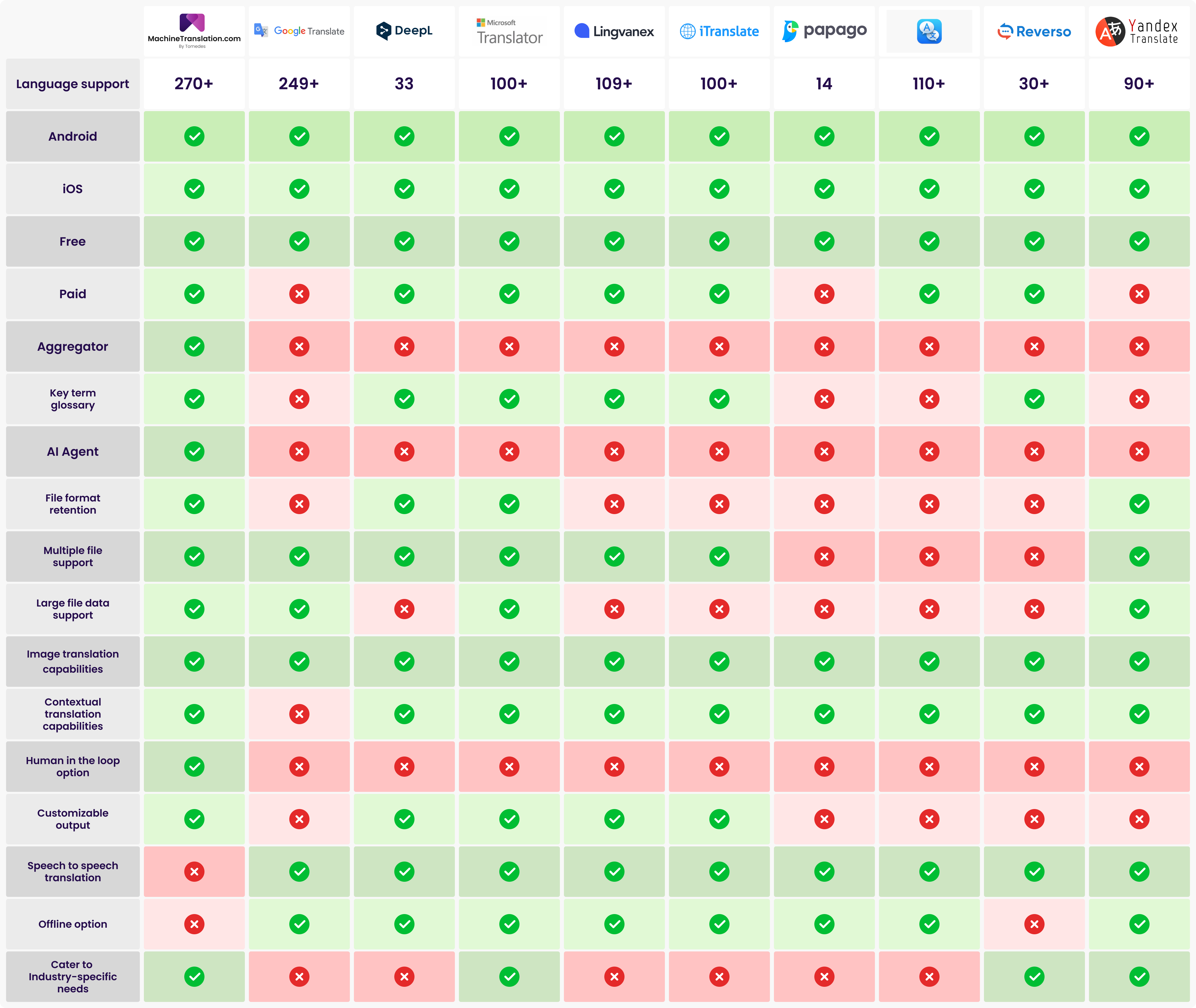 The best translation app depends on your daily needs. For accurate translations and deep customization, MachineTranslation.com leads the pack. For quick tasks, travel, or free offline use, Google Translate or iTranslate might suit you better.