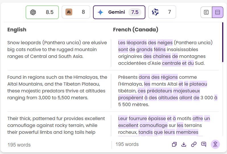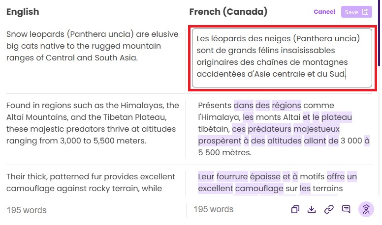The new interface presents translations side by side with the source text, allowing for easy comparison. You can quickly identify and correct errors, inconsistencies, or areas that require refinement. By eliminating the challenge of scrolling through long paragraphs, this feature makes the review process more efficient and ensures a smoother editing experience.