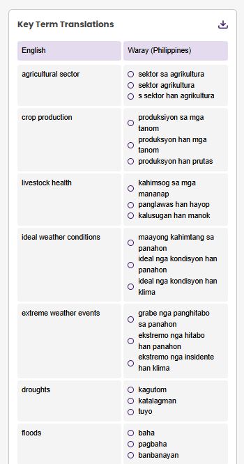 It highlights important terms in your source text and shows you up to three top translation options for eachâletting you choose the most accurate and context-appropriate wording in seconds.