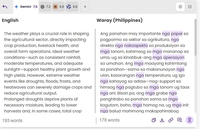 Use the side-by-side comparison tool to evaluate and fine-tune translations.