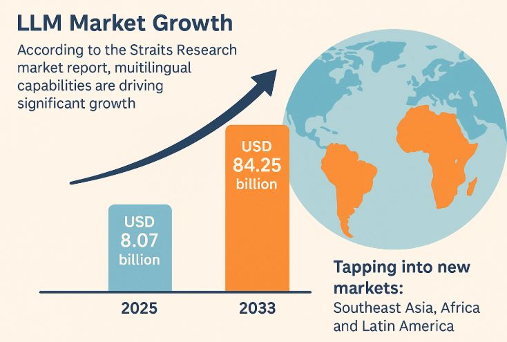 According to the Straits Research market report, the Large Language Model (LLM) market is projected to grow from USD 8.07 billion in 2025 to USD 84.25 billion by 2033.