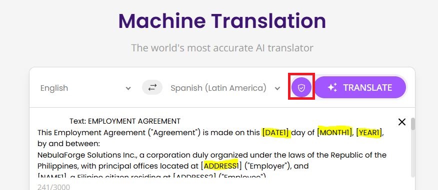 Hvilke oversettelsesverktøy er trygge for klientsensitiv informasjon? MachineTranslation.com, med sikker modus aktivert, tilbyr en uovertruffen kombinasjon av sikkerhet, hastighet og profesjonell oversettelseskvalitet.