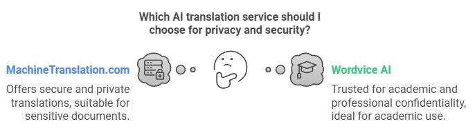 สำหรับผู้เชี่ยวชาญและธุรกิจ การมีนักแปล AI ที่แม่นยำและเชื่อถือได้ถือเป็นสิ่งสำคัญสำหรับการจัดการเอกสารขององค์กร สัญญา และการสื่อสารอย่างเป็นทางการ MachineTranslation.com และ Wordvice AI โดดเด่นในหมวดหมู่นี้เนื่องจากพวกเขาให้การปรับแต่งคำศัพท์ขั้นสูง ช่วยให้มั่นใจว่าคำศัพท์เฉพาะอุตสาหกรรมได้รับการแปลอย่างถูกต้อง นอกจากนี้ เครื่องมือเหล่านี้ยังให้ความสำคัญกับความปลอดภัยเป็นหลัก ซึ่งทำให้เป็นตัวเลือกที่ยอดเยี่ยมในการจัดการเอกสารทางธุรกิจที่เป็นความลับ